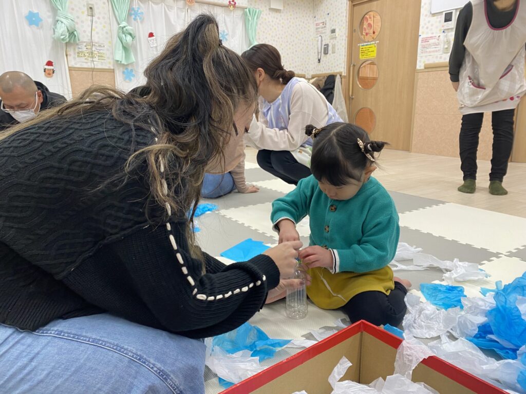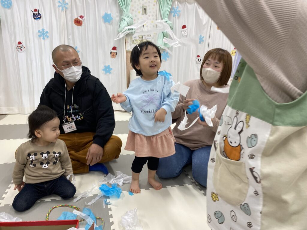親子で一緒に「あわてんぼうのサンタクロース」を歌ったり♪
